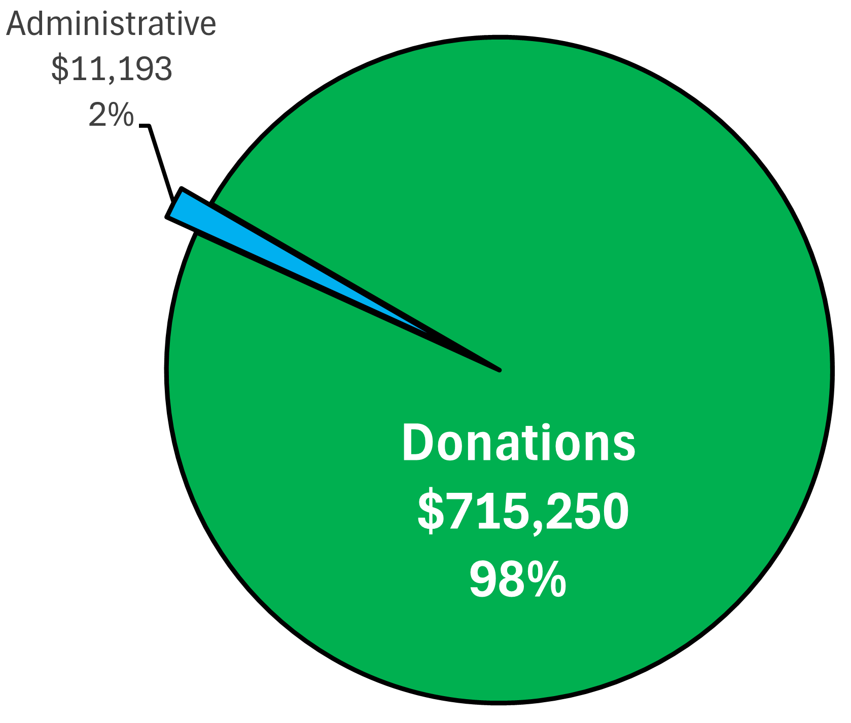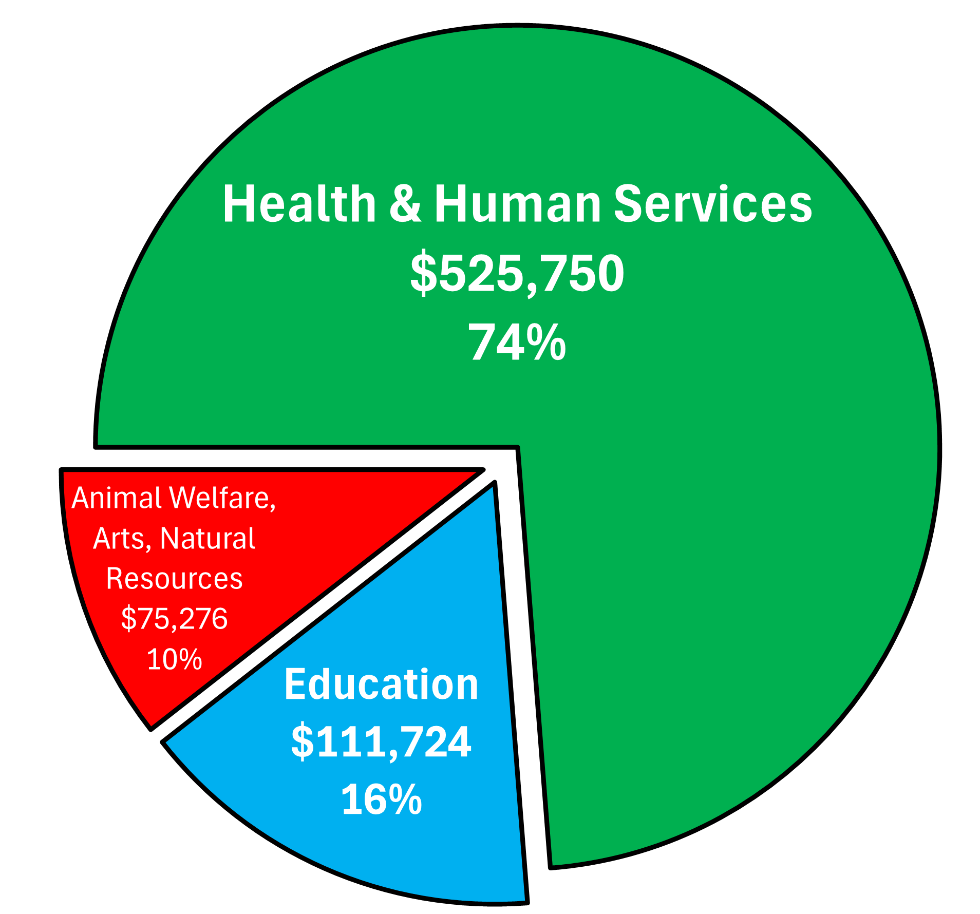Because we are an all volunteer organization, we can donate almost all of our funds to charities in our area. In 2025, our donations to local nonprofits totaled a record $715,250.