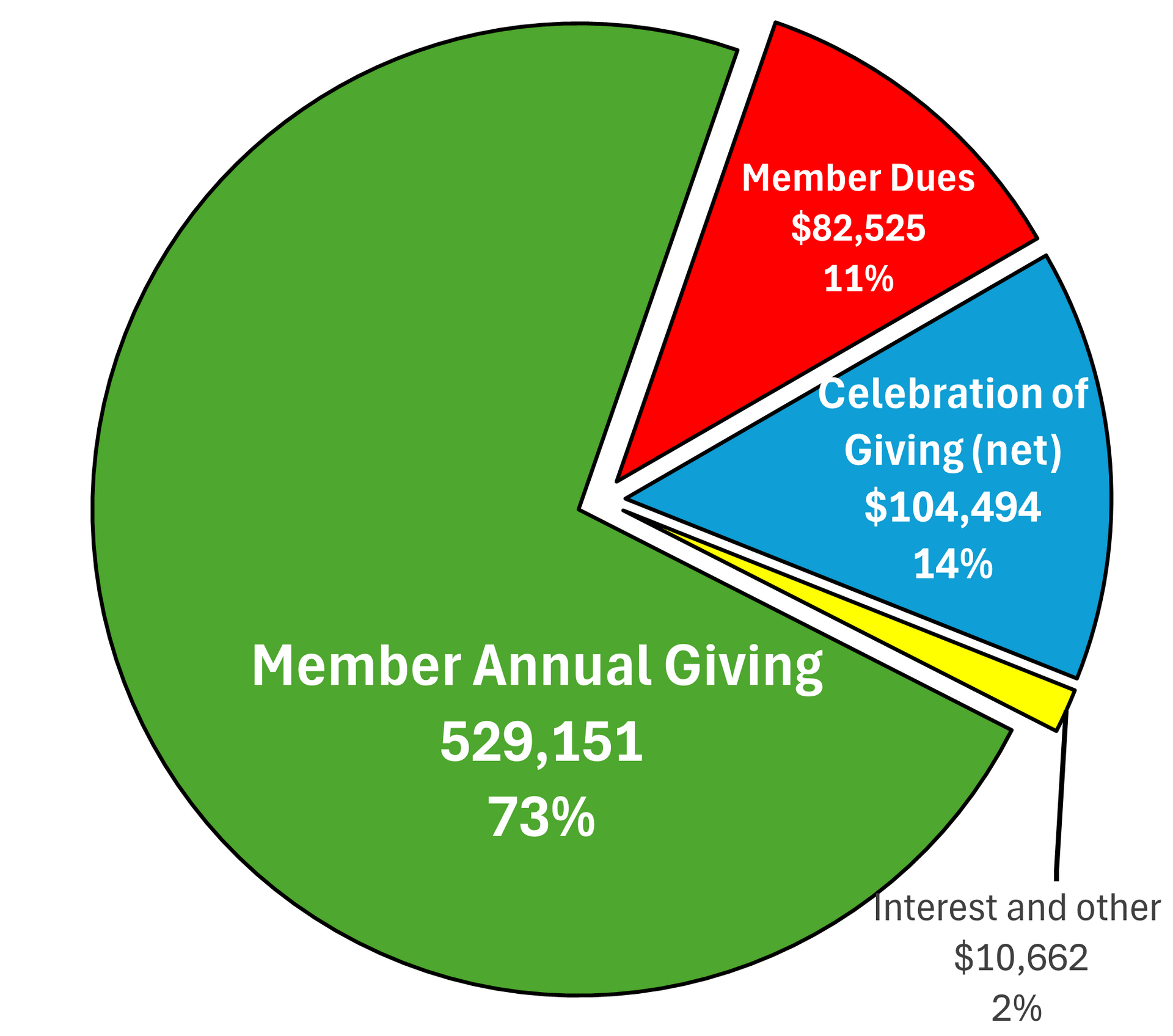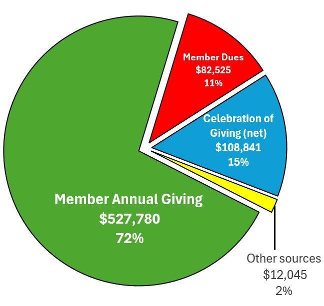 A large majority of our funds come from the generosity of our Members through their Annual Giving and Dues. In 2025, we raised a record $726,832.